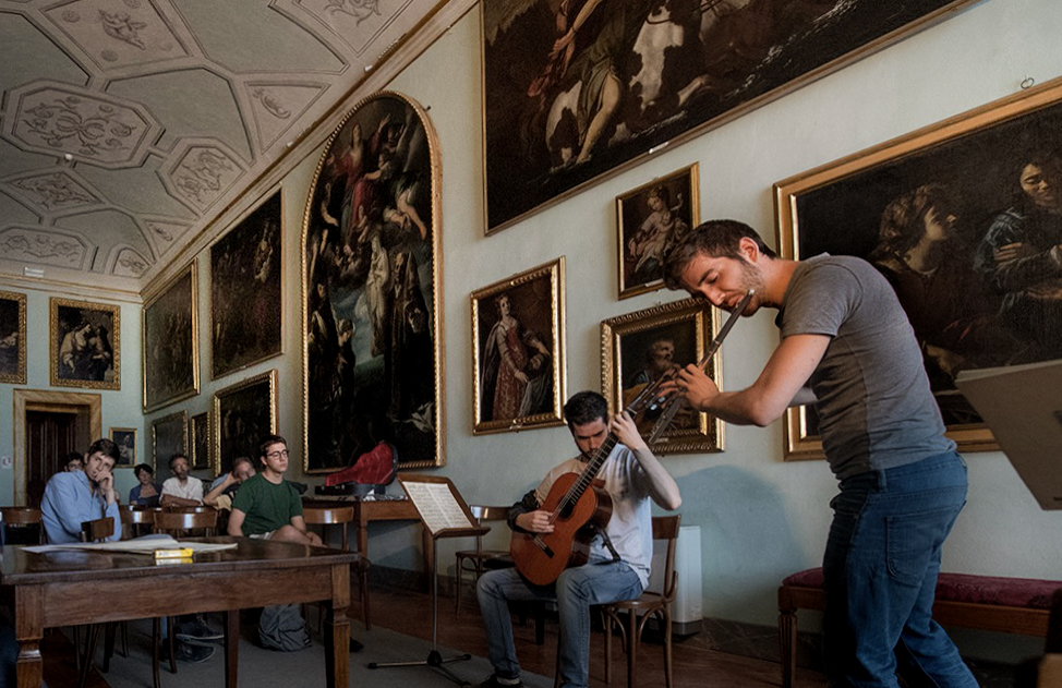The first course was inaugurated in 1932 at Palazzo Chigi Saracini in Siena. Since then, the number of students has gradually increased; today the courses are attended by around 600 students representing over 45 nationalities. The number of courses offered has been increased in a continuous interchange between old and new generations, from students becoming instructors – an integral part of the history of the Academy.