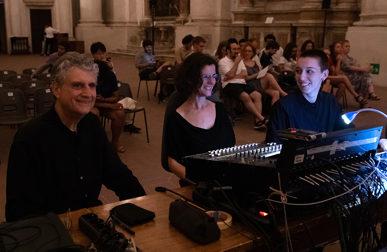 Nelle lezioni propedeutiche on-line verranno analizzate le opere con parti elettroniche da eseguirsi nei concerti del Festival e progettati gli ambienti esecutivi. Nei laboratori in sede, oltre all’esecuzione delle parti elettroniche, si affronteranno le problematiche di ripresa, elaborazione e spazializzazione dei suoni dal vivo anche in funzione di un lavoro di documentazione da realizzarsi in post produzione. Attraverso la preparazione, le prove e le esecuzioni dei pezzi con elettronica sopra elencati, verranno studiate differenti tecniche esecutive, utilizzando il sistema elettroacustico di SaMPL basato su amplificazione d&b audiotechnik, mixer digitale e spazializzazione multicanale in ottofonia.