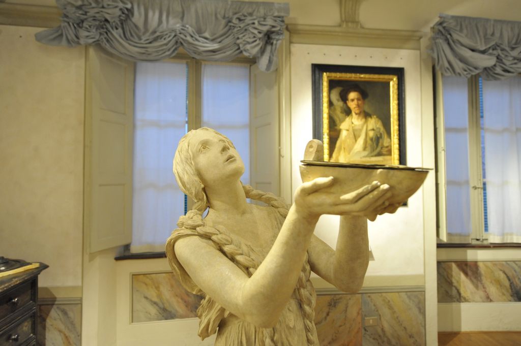 L’altro grande personaggio del quale fu mecenate fu Vico Consorti autore della porta bronzea laterale del Duomo di Siena e del Pantheon di musicisti per il giardino della sua Villa a Castelnuovo Berardenga di cui si espone l’interessante bozzetto dedicato a Chopin. Il Conte amava circondarsi di opere e fotografie che raffiguravano maestri di orchestra, violinisti, pianisti e musicisti di ogni tempo, a partire dal dono fattogli da Edoardo Mascheroni del busto di Giuseppe Verdi eseguito da Vincenzo Gemito che domina la stanza Micat in vertice.